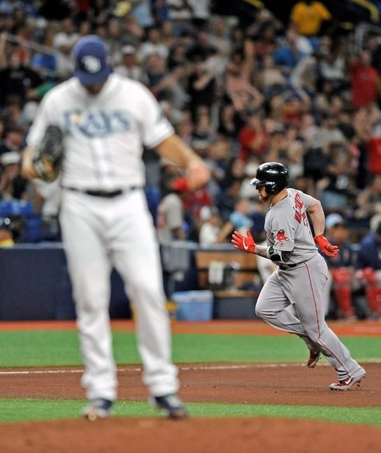 The Red Sox, who have recovered from a 3-8 start, improved to a season-high 10 games over .500 at 56-46, moving one percentage point ahead of the Rays (57-47), who have lost seven of eight.