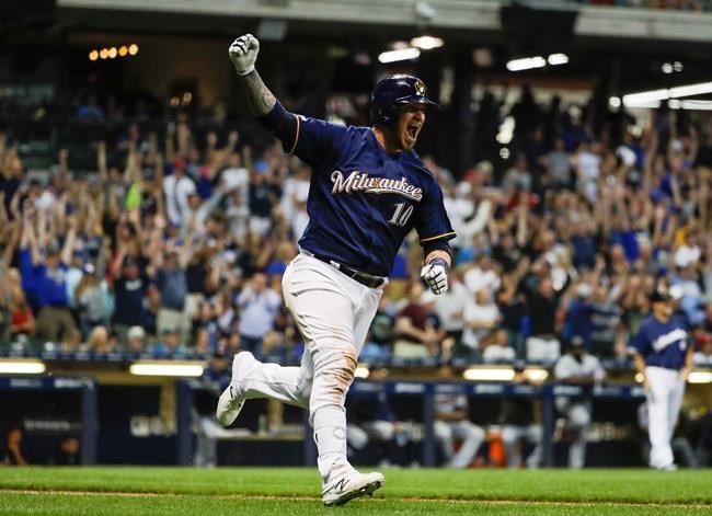 The Brewers are in third, 2 1/2 games by the division-leading Cubs.