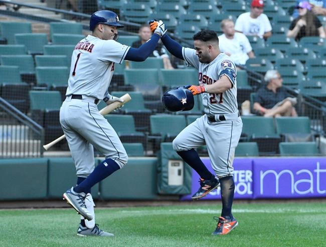 Springer said he was ready for an opening fastball from hard-throwing White Sox rookie Dylan Cease. He sent a 467-foot shot to the back of the left field stands.