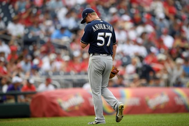 Washington scored 30 runs in the final two games against Milwaukee but only won Sunday — falling 15-14 in 14 innings Saturday night after closer Sean Doolittle blew a three-run lead in the ninth. The teams combined to hit 23 homers over the weekend.
