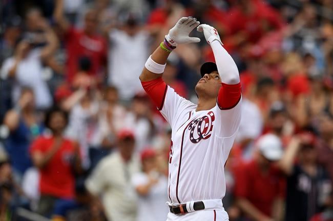 Matt Adams and Victor Robles hit back-to-back homers in the first to give the Nationals a 4-0 lead, and Anthony Rendon and Soto did the same in the third as the advantage ballooned to 13-0. Washington has gone for back-to-back homers ten times this season.