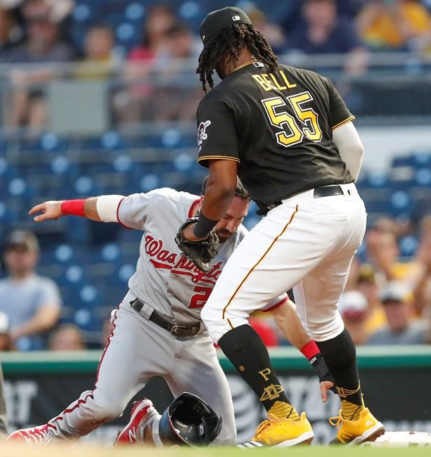 Pirates reliever Clay Holmes hit Adam Eaton with a pitch before being replaced by Michael Feliz in the fifth. Anthony Rendon drove a double to the gap in right-centre field off Feliz, scoring Eaton for a 1-0 Nationals lead.