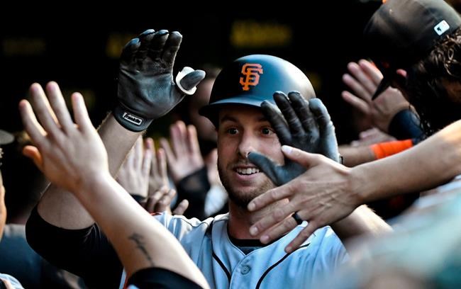 San Francisco dropped to 3-2 on a nine-game trip. Austin Slater hit a two-run homer for the Giants (63-63), and Kevin Pillar added a solo drive.