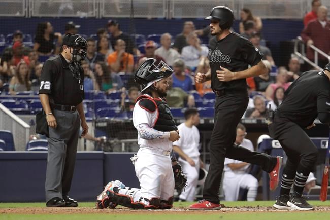 Scott Kingery’s three-run homer off Miami rookie starter Jordan Yamamoto highlighted a six-run fourth and erased a 1-0 deficit. Kingery drove Yamamoto’s fastball over the left-centre field wall for his 15th home run.