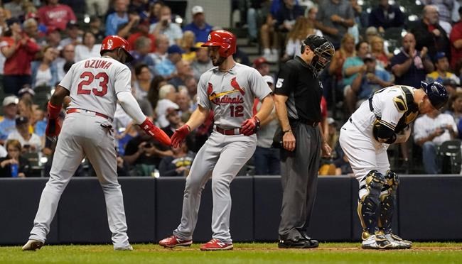 Ozuna helps power Cards past Brewers 12-2