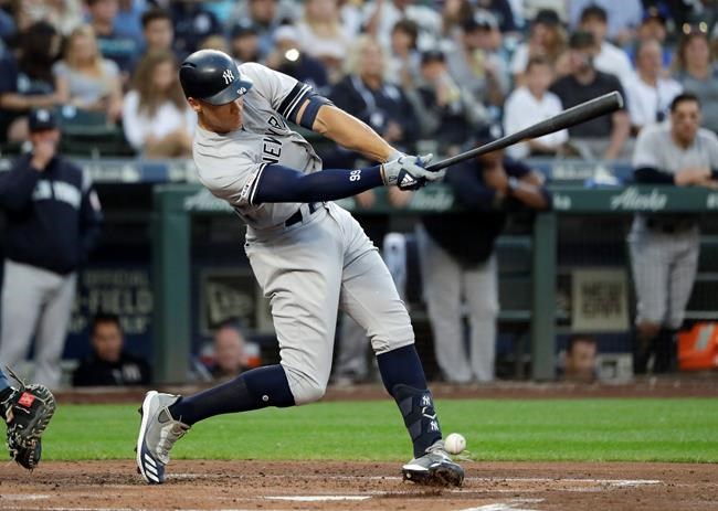 After DJ LeMahieu singled to open the game, Judge lined the first pitch from Yusei Kikuchi out to centre field. The hard drive hit halfway up on the batter’s eye.