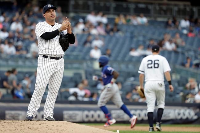 Yankees left fielder Clint Frazier drew big cheers when he threw out Elvis Andrus at home for the final out of the fifth. Frazier started in the outfield for the first time since being demoted to Triple-A Scranton/Wilkes-Barre in mid-June for a 2 1/2-month minor league stint that ended Sunday. The brazen, red-headed slugger made a few embarrassing miscues in the outfield prior to the demotion and was tasked with sharpening his defence.
