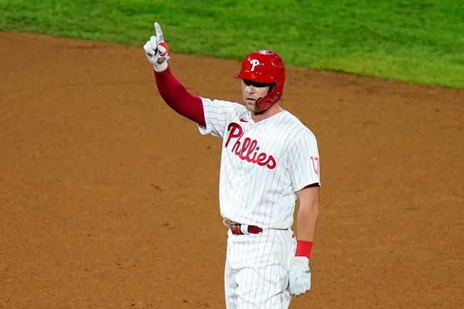 Jean Segura lined a three-run double to left-centre in the fourth and scored on Alec Bohm’s sacrifice fly to make it 6-0.