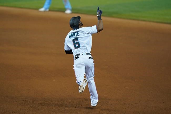 Marte, who was acquired in a trade with Arizona on Monday, drove a 1-0 pitch from Shun Yamaguchi (1-3) deep to left-centre for his third homer. He also reached on an error in the sixth and scored from first on Garrett Cooper’s double.