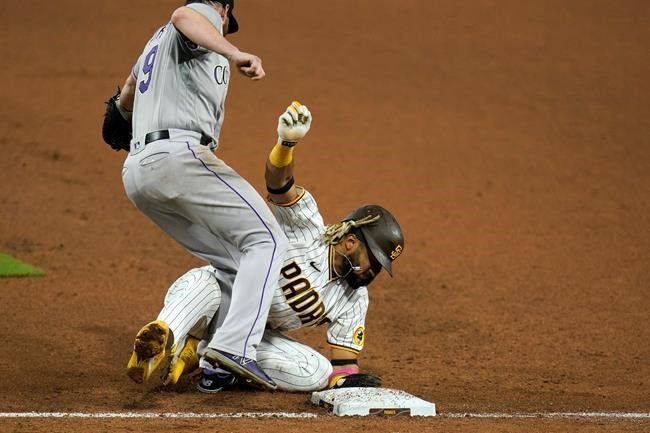 The Padres squandered two big scoring chances earlier, including loading the bases with one out in the seventh before Manny Machado lined out to third baseman Nolan Arenado, who doubled Fernando Tatis Jr. off first. Tatis originally was called safe but the Rockies challenged the call and it was overturned. Tatis was hit on the right arm by a pitch from Yency Almonte to load the bases.