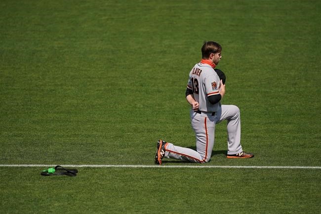 Athletics: C Sean Murphy took several backswings off the helmet during the series, one by Wilmer Flores on Sunday. … RHP Lou Trivino sustained a “pretty good-sized bruise” according to Melvin after being hit by a line drive on the upper leg Saturday. Trivino did some pregame throwing to test the injury. … INF Chad Pinder, on the injured list with a strained right hamstring, has begun baseball activities and took swings in the cage the past two days.
