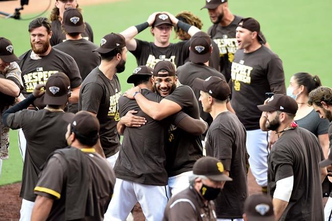 The clincher came in the finale of a series that was moved from Seattle because of poor air quality due to wildfires, so the Mariners were considered the home team and batted last. After closer Trevor Rosenthal (1-0), another newcomer, struck out Phillip Ervin for the final out, the Padres had a brief but joyous celebration in the infield. Then they gathered near the dugouts to get playoff caps and T-shirts.