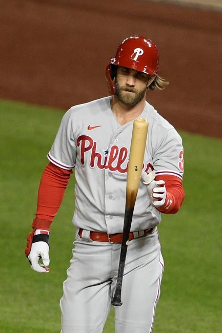 A day after striking out with the bases loaded in the seventh off a loss to Toronto and coming out of the game, Harper went 0 for 4 with three strikeouts as the designated hitter, dropping his average to .254.