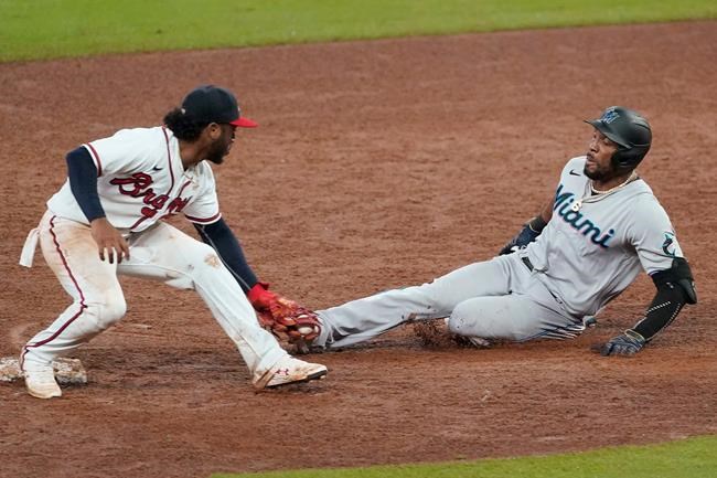 Braves rookie right-hander Ian Anderson (3-2) threw five scoreless innings before giving up three unearned runs in the sixth. Brian Anderson opened the inning with a broken-bat liner. Third baseman Adeiny Hechavarria dropped the liner for an error as the barrel of the bat landed a few feet away.