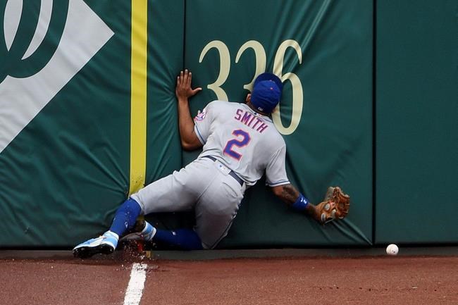 In the fifth, Mets left fielder Dominic Smith slipped and then collided with the left-field wall trying to catch Stevenson’s flyball. Smith stayed down as Stevenson rounded the bases for an inside the park homer. Trainers and teammates came out to attend to Smith, who stayed in the game but did not play in the nightcap.