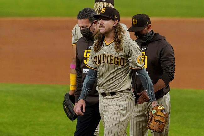ARLINGTON, Texas – Mike Clevinger’s return to the mound for the San Diego Padres was done after two pitches in the second inning of the NL Division Series opener.