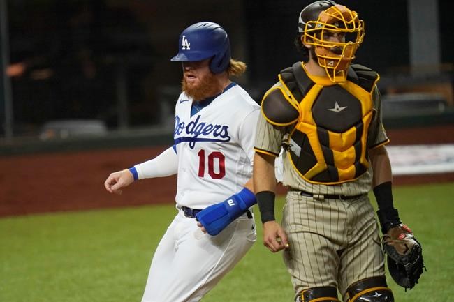 The eighth San Diego pitcher, Craig Stammen, threw a wild pitch to bring home Max Muncy, who had doubled, and finish off LA’s four-run inning.