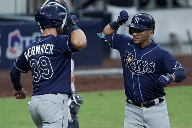 SAN DIEGO – Randy Arozarena homered for the third straight game and Kevin Kiermaier and Michael Perez also went deep for the Tampa Bay Rays, who beat the New York Yankees 8-4 Wednesday night to move within one victory of reaching the AL Championship Series for the first time in 12 years.