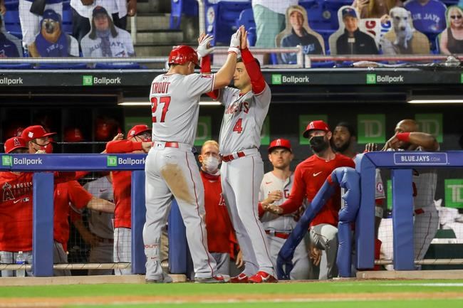 Angels win 7-5 in home opener for Florida-based Blue Jays