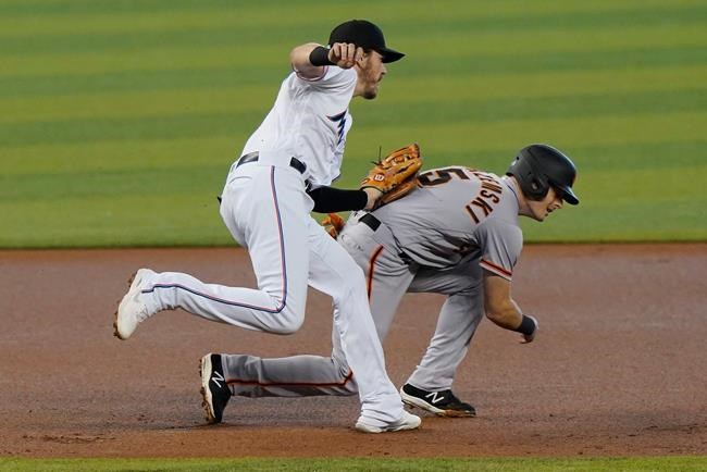 Pablo López (0-2) totalled a career-high nine strikeouts in six innings but allowed the unearned run. The Giants had a runner at first when Aguilar failed to glove a two-out grounder at first base for an error, and Alex Dickerson followed with an RBI single.