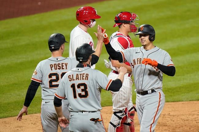 PHILADELPHIA – Buster Posey had his first multihomer game in nearly five years, Alex Dickerson and Wilmer Flores connected during a six-run eighth inning and the San Francisco Giants muscled past the Philadelphia Phillies 10-7 Tuesday night.