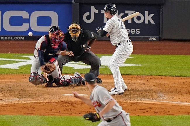 Yanks stop 5-game skid, beat Braves 3-1 on wild pitch, walk