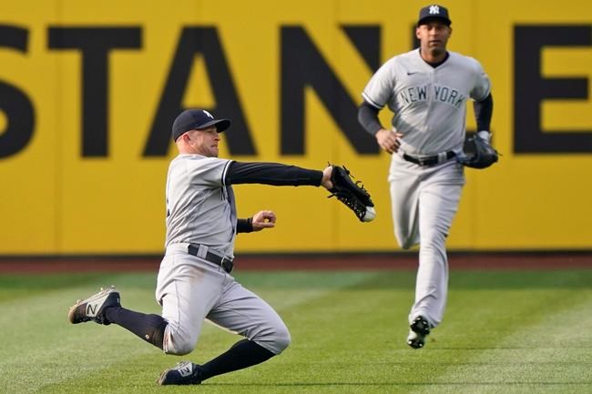 Yankees: 3B Gio Urshela was not in the lineup after his back tightened up during Wednesday’s loss. Boone said he was available only in an emergency, but expects him to return Thursday. … Boone said 1B Luke Voit continues to progress and could be back in the next few weeks after knee surgery. Voit will begin taking batting practice next week in at the alternate site in Scranton. He led the majors in homers last season and Boone said the club misses his clubhouse presence.