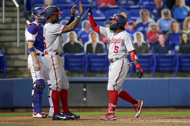Erick Fedde went six strong innings, Josh Harrison hit a three-run homer and the Washington Nationals beat Toronto 8-2 in George Springer’s Blue Jays debut Wednesday night.