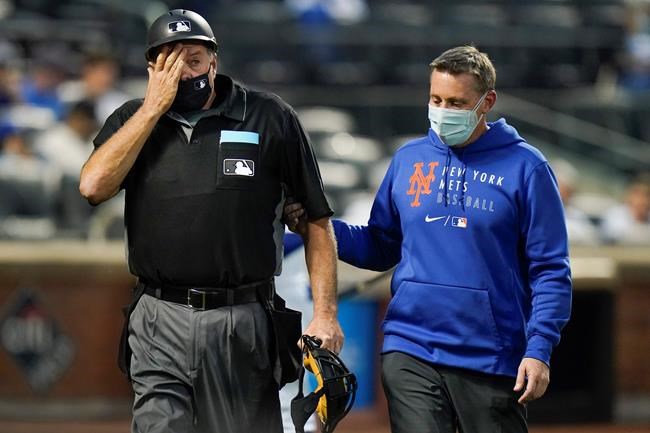 NEW YORK – Plate umpire Jerry Layne was staggered by a foul ball off his mask and left the game between the Boston Red Sox and New York Mets at Citi Field on Wednesday night.
