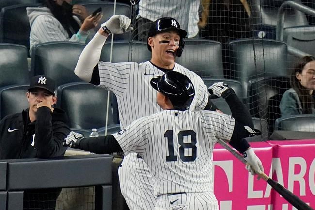 Clint Frazier, Aaron Hicks and Rougned Odor also homered, and Giancarlo Stanton had three hits. The Yankees set highs for runs, hits (15) and homers (five).