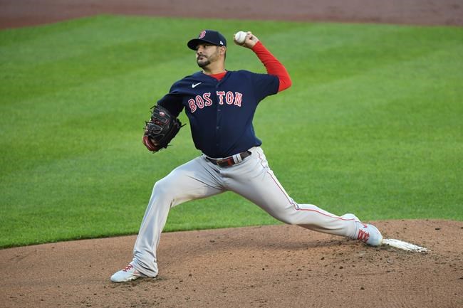 Boston Red Sox starting pitcher Martin Perez throws during the first inning of a baseball game against the Baltimore Orioles, Monday, May 10, 2021, in Baltimore. (AP Photo/Terrance Williams)