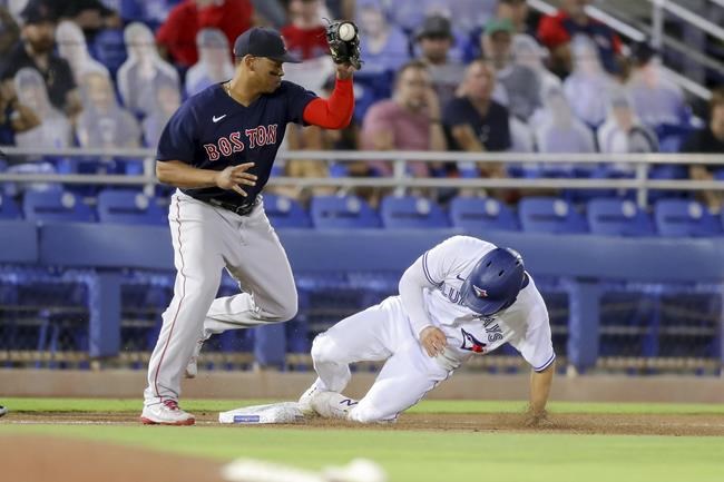 Jonathan Davis and Randal Grichuk had RBI singles off Hirokazu Sawamura in the sixth as the Blue Jays went up 7-5. Grichuk’s hit came after Bogaerts made a diving grab on Teoscar Hernández’s two-out grounder, but second baseman Michael Chavis was charged with an error for dropping a flip toss.