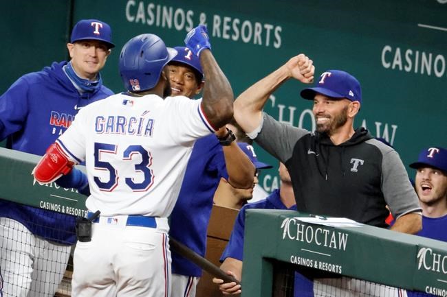 ARLINGTON, Texas (AP) — Adolis García kept up his home run barrage, connecting twice Saturday and helping power the Texas Rangers past the Houston Astros 8-4.