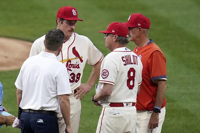 Mikolas was warming up to start the fifth, pitching to backup catcher Andrew Knizner while Molina was putting on his catcher’s gear after making the last out of the fourth, when the pitcher grabbed his right elbow then looked toward the Cardinals dugout. An athletic trainer, pitching coach Mike Maddux and then Shildt came out.