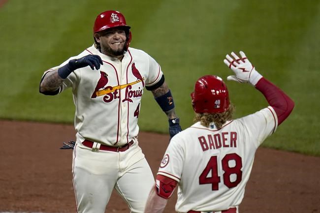 ST. LOUIS (AP) — Four pitchers combined for five innings of scoreless, two-hit relief after Miles Mikolas appeared to injury his forearm in his delayed season debut, and Yadier Molina hit a tiebreaking home run that lifted the St. Louis Cardinals over the Chicago Cubs 2-1 on Saturday night.
