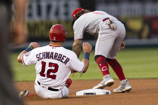 WASHINGTON (AP) — Eugenio Suarez homered off Washington ace Max Scherzer in his first career start as a leadoff hitter, Tyler Mahle allowed three hits in 5 1/3 scoreless innings, and the Cincinnati Reds beat the Nationals 2-1 on Tuesday night.