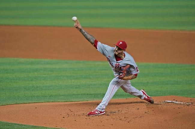 MIAMI (AP) — Vince Velasquez pitched three-hit ball for six innings, Rhys Hoskins homered and the Philadelphia Phillies defeated the Miami Marlins 2-0 Tuesday night.