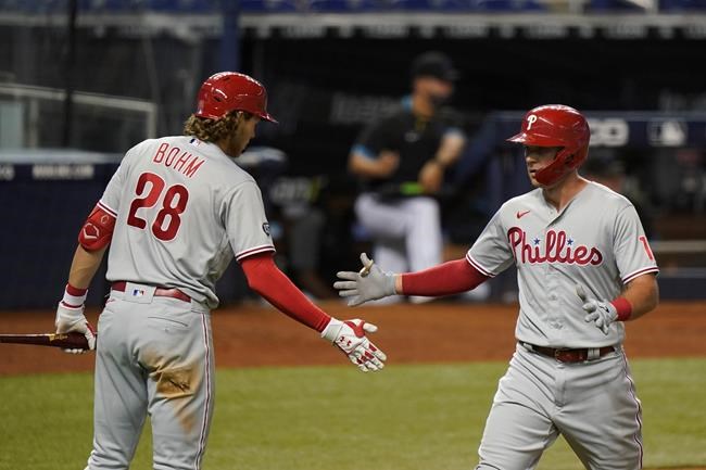 Sam Coonrod pitched a scoreless seventh and Jose Alvarado followed with a perfect eighth for the Phillies. Hector Neris got his eighth save, working around Garrett Cooper’s two-out single in the ninth.