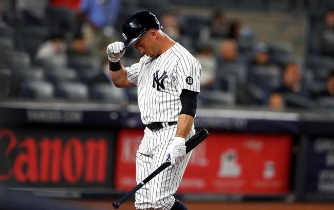 The Yankees are also without outfielder Aaron Hicks, who was scheduled to have left wrist surgery Wednesday that could keep him out the rest of the season.