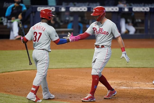Herrera’s hitting, arm helps Phillies beat Marlins 3-2