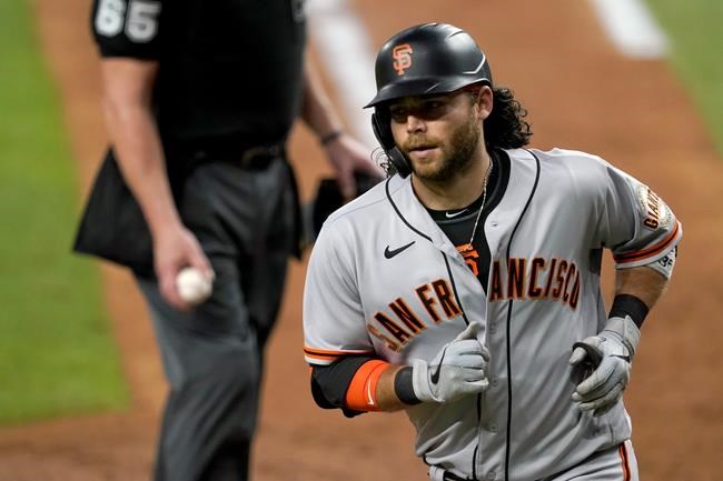 ARLINGTON, Texas (AP) — Brandon Crawford was in for a special night just by taking the field at shortstop for the San Francisco Giants. His two home runs and a big slam by Mike Tauchman just made the planned postgame champagne toast even sweeter.