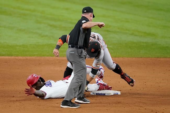 The Rangers tied the game 2-2 in the ninth off sidearm-throwing Tyler Rogers, the fifth San Francisco pitcher, who also pitched the 10th after his fourth blown save in 12 chances. Kiner-Falefa had a leadoff single in the ninth, stole second and scored on Adolis Garcia’s popup that dropped in right field for a hit.