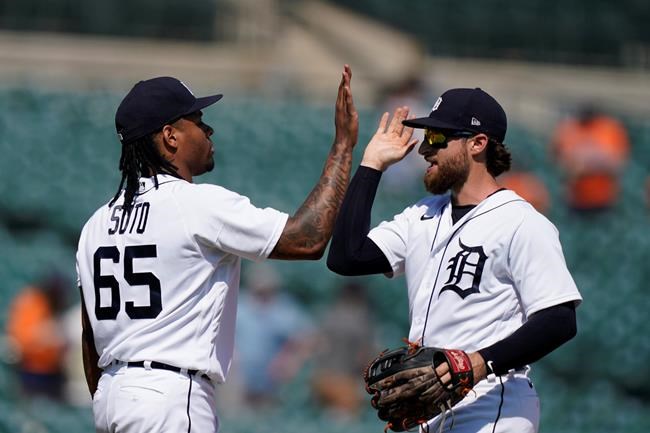 Joe Jiménez (1-0) pitched a 1-2-3 seventh for his first win since last Aug. 26. Alex Lange threw the eighth and Gregory Soto pitched a perfect ninth to finish the six-hitter.