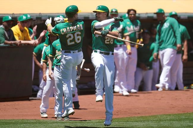 Just when the A’s finally got a day devoid of wind during an especially blustery June stretch for the Bay Area, Chapman’s home run ball left the bat at 103.1 mph and traveled 384 feet. Then Olson cleared the fences twice.