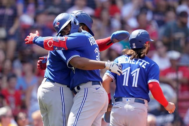 BOSTON (AP) — Teoscar Hernández hit a pair of three-run homers over the Green Monster — two of Toronto’s eight longballs as the Blue Jays routed the Boston Red Sox 18-4 on Sunday.