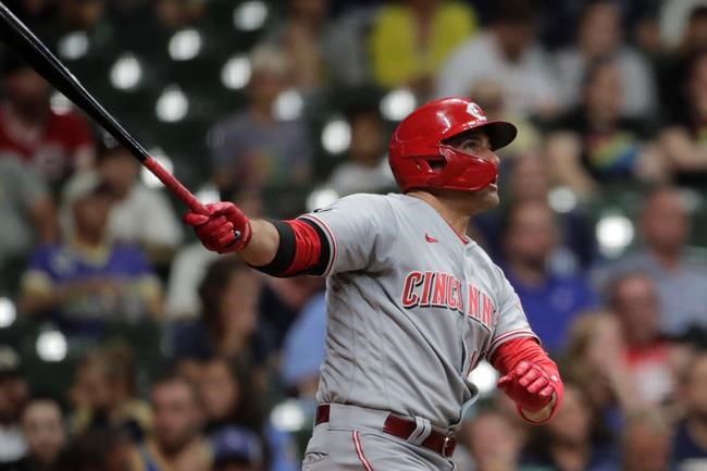 Votto homered off reliever Eric Yardley in the seventh. Eugenio Suárez hit a two-run single and Aquino delivered his two-run shot off Hoby Milner in the ninth.