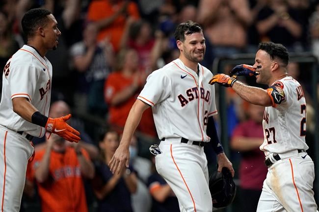 HOUSTON (AP) — Jose Altuve belted a grand slam in the 10th inning and the Houston Astros, saved by Carlos Correa’s tying homer in the ninth, beat the Texas Rangers 6-3 on Tuesday night to give manager Dusty Baker quite an exciting birthday gift.