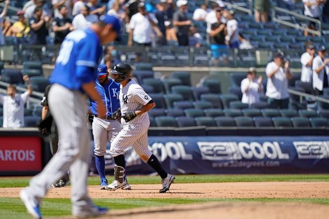 NEW YORK (AP) — Aaron Judge homered for the first of his three hits, Gary Sánchez connected for the second straight game and New York beat Kansas City for its first blowout victory in a month.