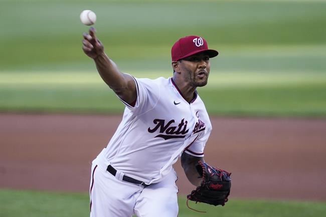 Washington Nationals starting pitcher Joe Ross throws during the first inning of a baseball game against the Tampa Bay Rays at Nationals Park, Tuesday, June 29, 2021, in Washington. (AP Photo/Alex Brandon)