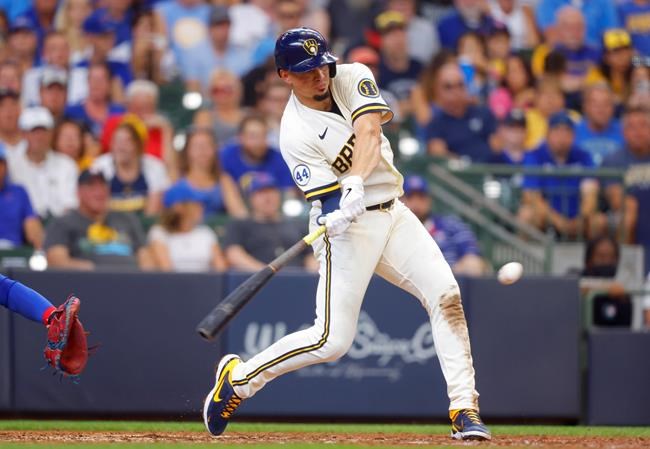 MILWAUKEE (AP) — Highly touted Milwaukee prospect Aaron Ashby got roughed up for seven runs in the first inning of his big league debut, but Luis Urias homered twice as the Brewers rallied to rout the Chicago Cubs 15-7 Wednesday for their eighth straight win.